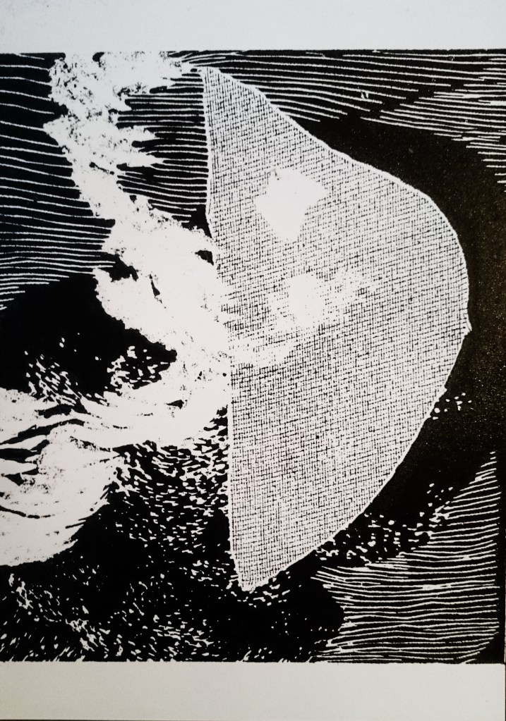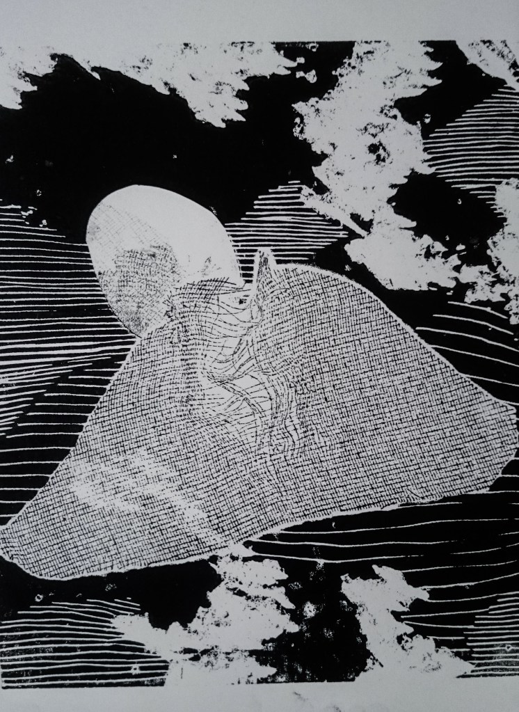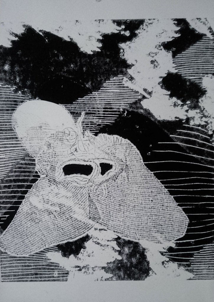 Gravure sur bois – Impression monotype en noir et blanc – 21×29,7cm
